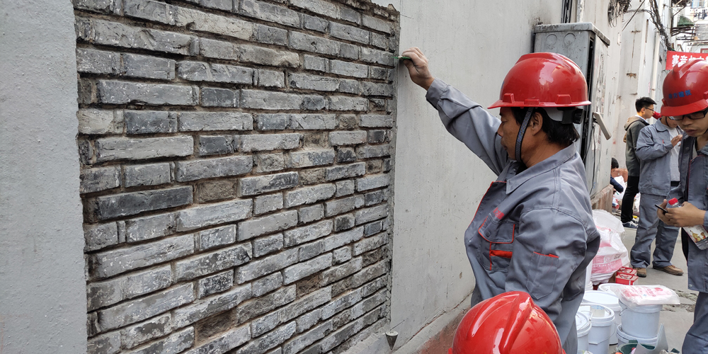 圖二:清水墻保護(hù)施工前準(zhǔn)備工作