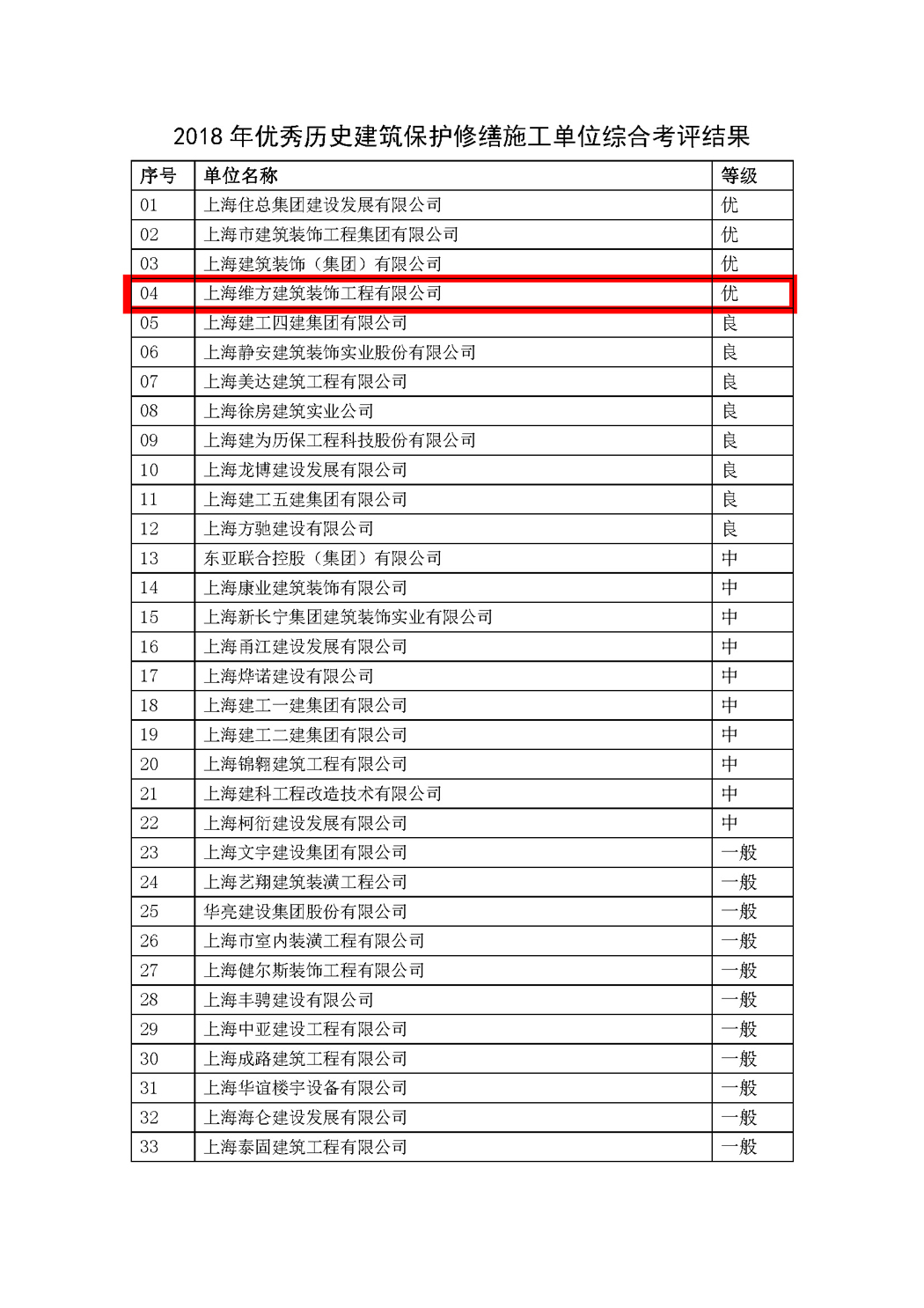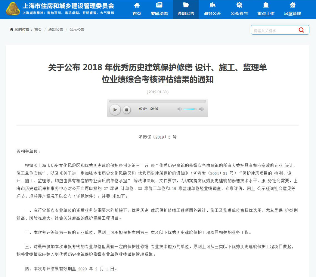 上海維方公司榮獲“2018年優(yōu)秀歷史建筑保護修繕施工考評”優(yōu)級單位