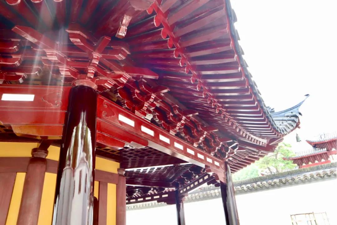 ? ? ? ??闌額,是中國古代建筑中柱子上端聯(lián)絡(luò)與承重的水平構(gòu)件。繼1954年修繕后,本次龍華塔保養(yǎng)維護(hù),參照《營造法式》上的油漆方法,恢復(fù)宋制“七朱八白”粉飾方式,使千年古塔重現(xiàn)古樸原貌。