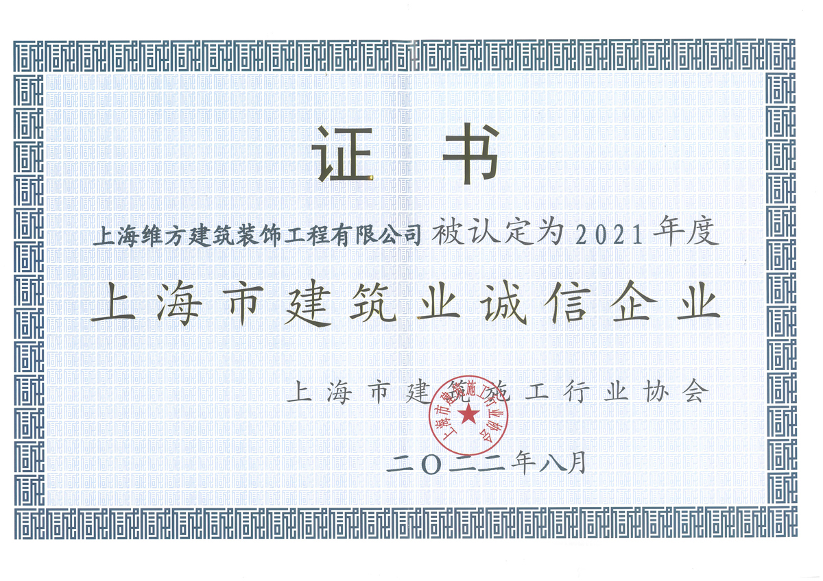 2021年度上海市建筑業(yè)誠(chéng)信企業(yè)