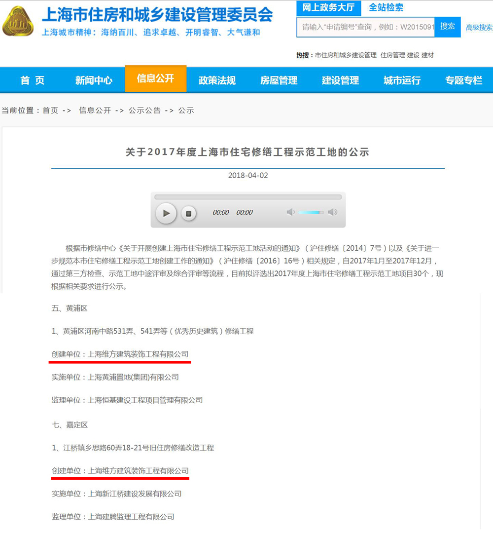 上海維方兩處項(xiàng)目獲2017年度住宅修繕示范工地公示